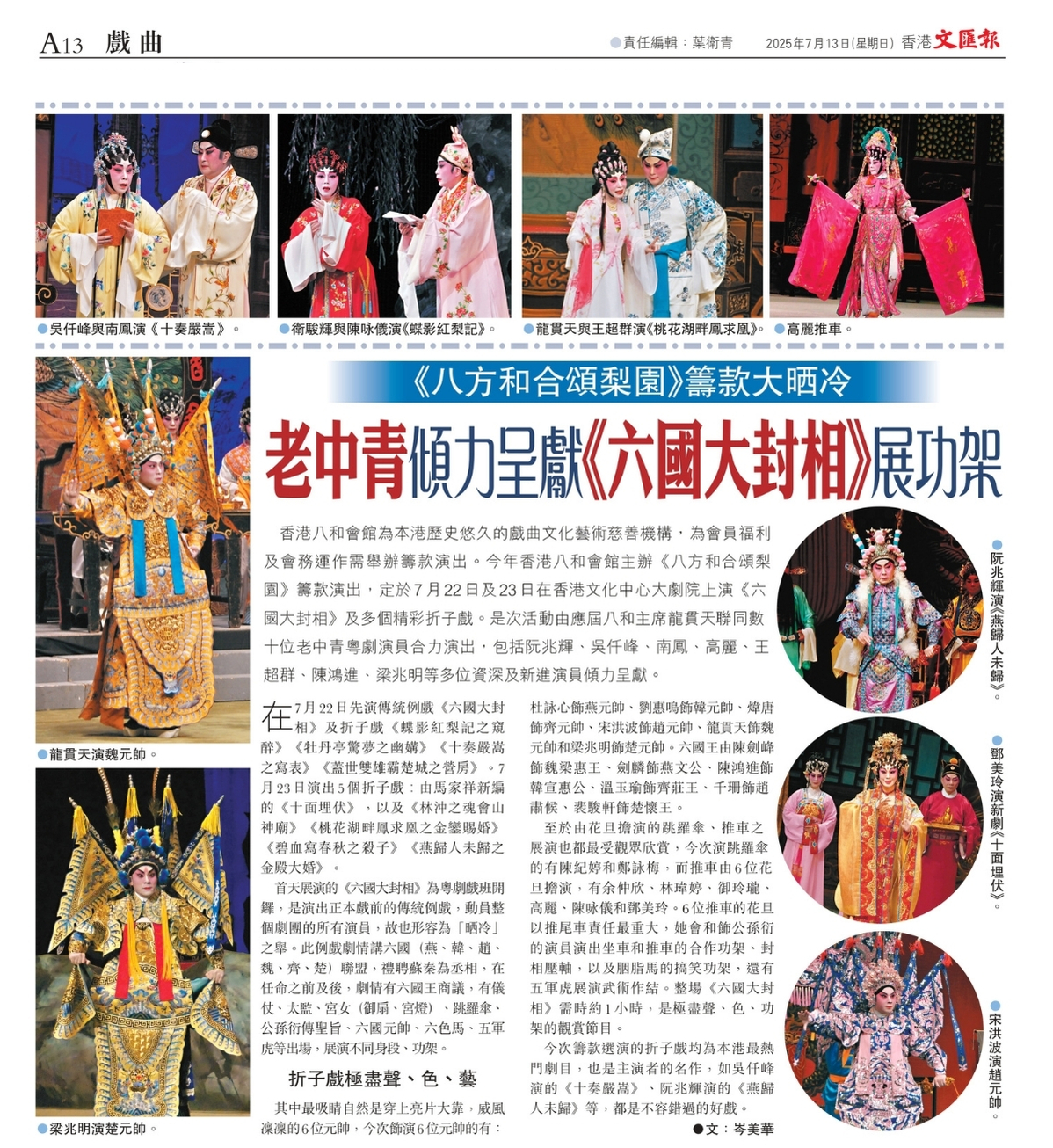 【香港文匯報】粵劇盛事|《八方和合頌梨園》籌款演出